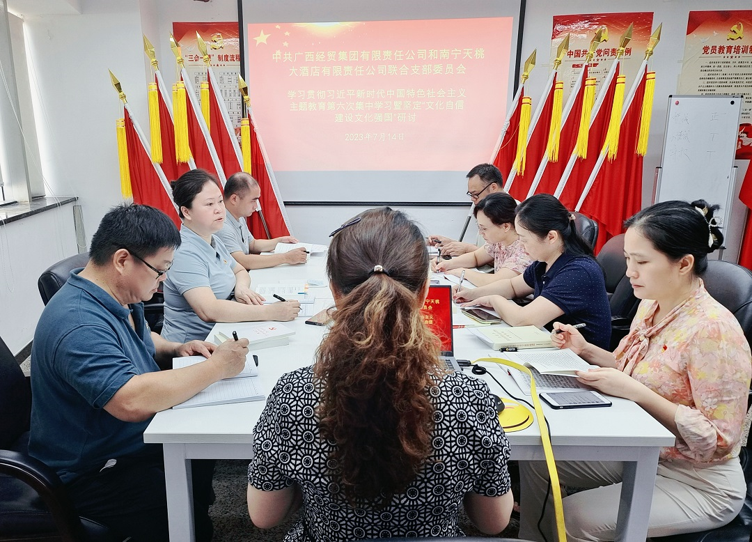 為學習貫徹黨的二十大精神,促進黨員學思想、強黨性、重實踐、建新功,將學習成果轉化為強大動力和工作實踐。7月14日,經(jīng)貿和天桃聯(lián)合黨支部組織黨員圍繞“堅定文化自信 建設文化強國”主題開展學習研討。