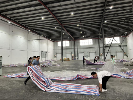 倉庫中,黨員干部職工充分發(fā)揚(yáng)不怕臟、不怕累的優(yōu)良作風(fēng)和團(tuán)結(jié)協(xié)作的良好精神風(fēng)貌,兩兩配合清理薄膜、疊彩條布、清掃垃圾,有效提升庫房的使用價值,同心協(xié)力營造整潔有序的生產(chǎn)環(huán)境。
